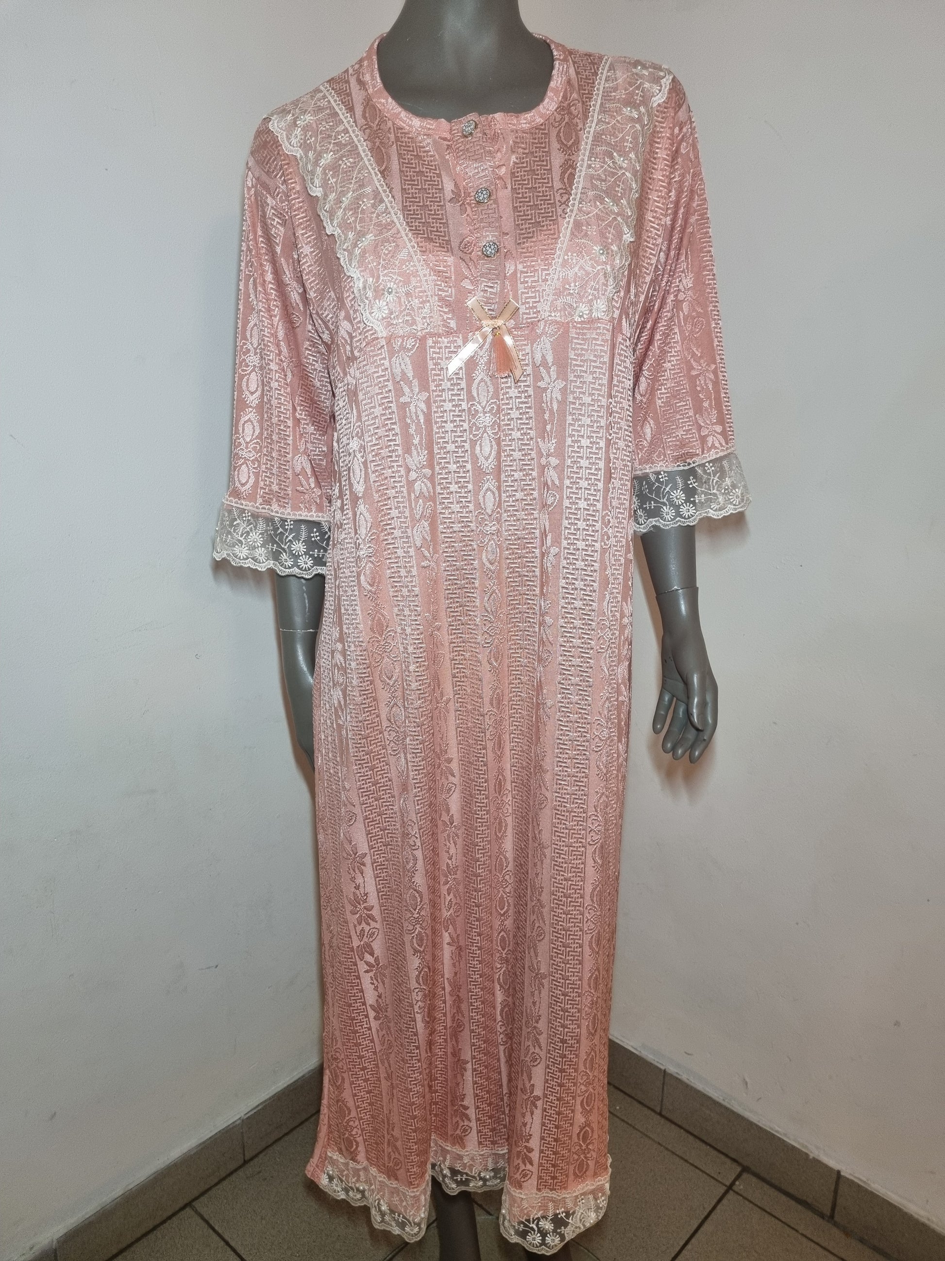 Ervaar ultiem comfort en elegantie met dit stijlvolle nachthemd, perfect voor ontspannen avonden en rustige nachten. Gemaakt van een zachte, glanzende stof met een subtiel zigzagpatroon, straalt dit huisjurk vrouwelijkheid en luxe uit.