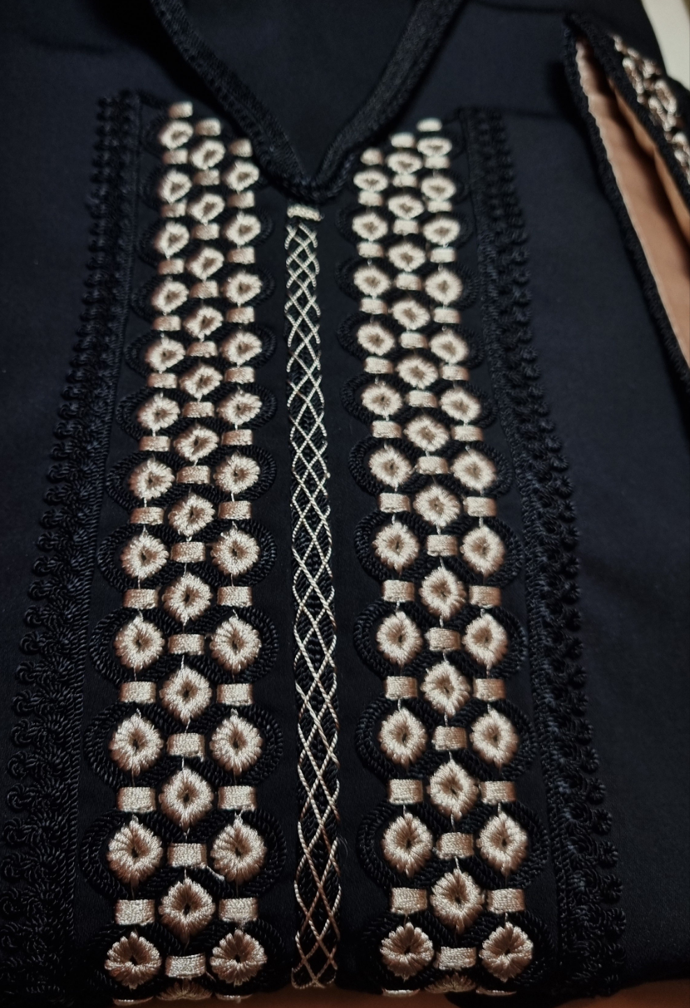 De jelleba Lina is een één delige jellaba van crêpe stof, uitgevoerd met een verfijnde beige tarz en beige binnevoering in de mouwen. Deze tijdloze combinatie van zwart en beige zorgt voor een chique, maar moderne uitstraling. Perfect voor zowel formele als informele gelegenheden.
